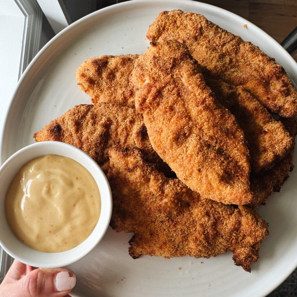 I have tried so many different crispy chicken tender recipes in the air fryer and none of them ever come out quite crispy enough, and if they do that usually means the chicken is super dry. These were perfection!!! So delicious, and I couldn’t believe how crispy they were on the outside and juicy on the inside. I followed the recipe to a T aside from using oat milk in place of regular milk and they came out great. This certainly be another POY recipe to add to my rotation! Thank you for creating and sharing such delicious and user friendly recipes 🙂