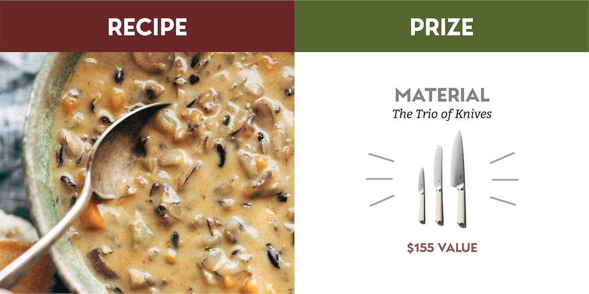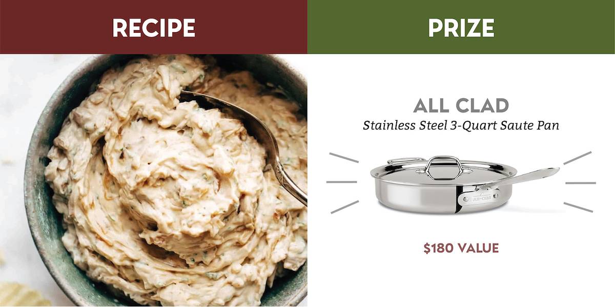 By emailing your completed recipe image to us, you are entered to win the prize associated with that recipe. A bonus entry is counted when you leave a rating for the recipe on the blog.